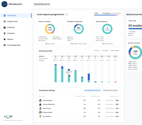 The Switch platform helps create and deliver coaching programs for European business schools. The course builder allows designing of unique curriculums with different sets of modules and activities for each school.
