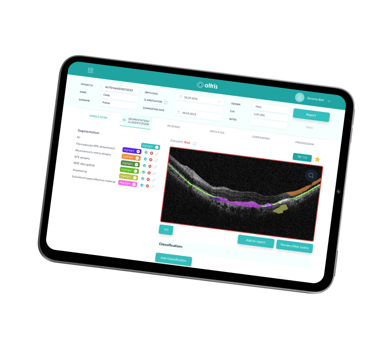 Altris Education is an innovative mobile app for training in Optical Coherence Tomography (OCT) interpretation.