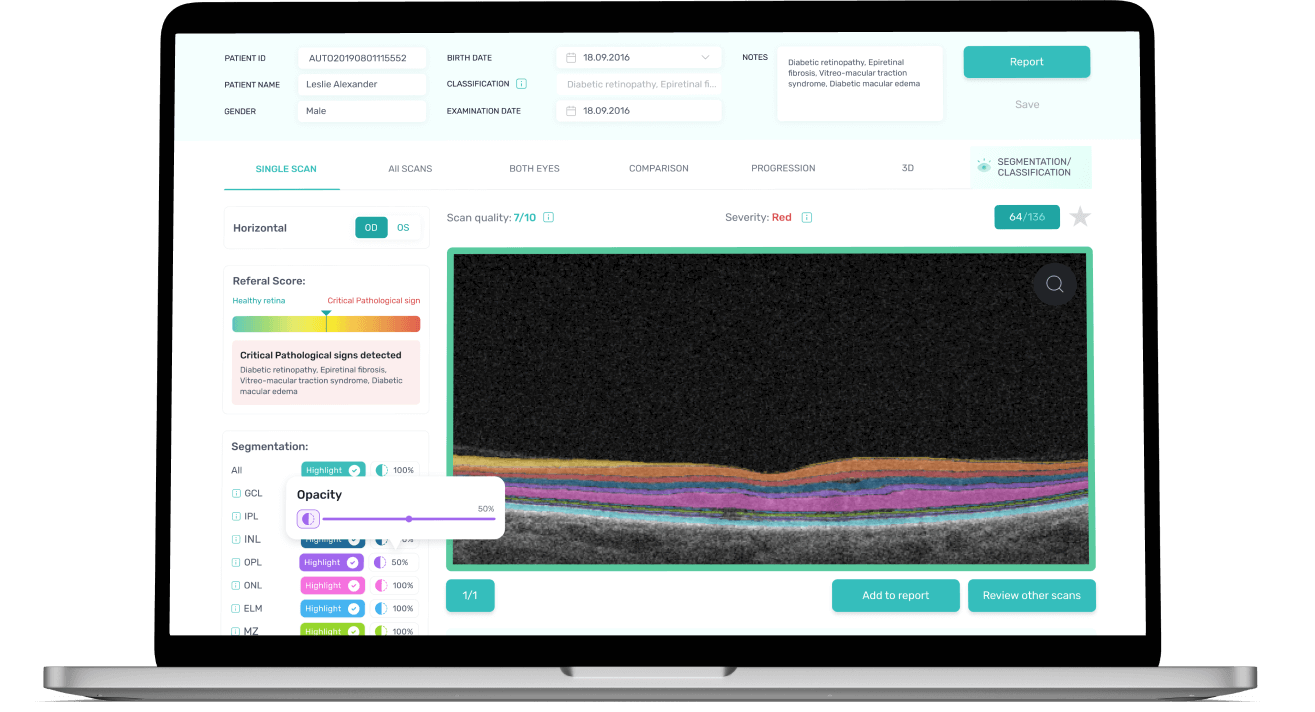Based on AI technologies, It provides eye care community, including ophthalmology and optometry students with OCT scans of various retinal conditions.