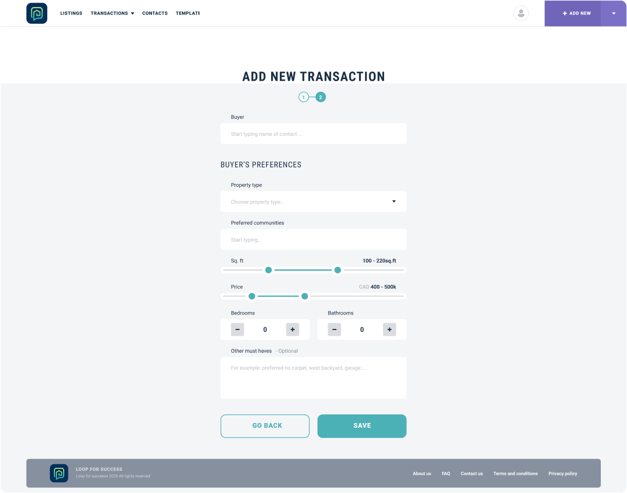 Manage property purchase and sale transactions according to detailed buyers’ preferences