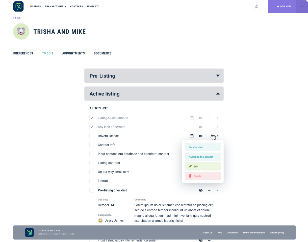 Create customisable to-do lists for smooth interactions with specific listings and customers