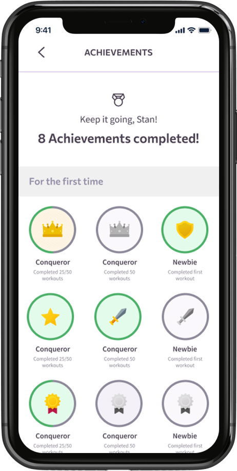 Tjäna belöningar för kontinuerlig träning och genomförda träningspass.